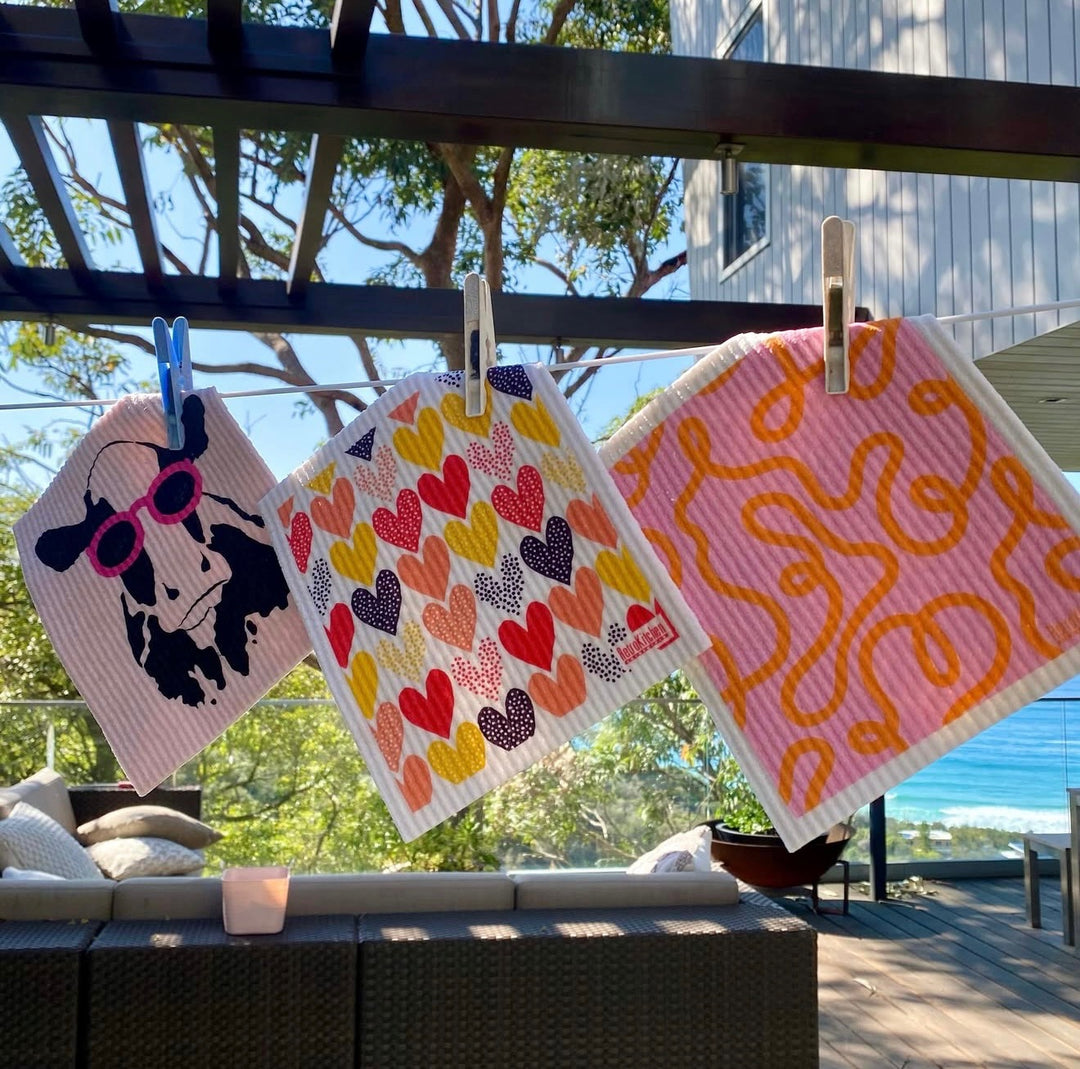 RetroKitchen kitchen sponge cloths not only add fun to the kitchen, they are machine washable and 100% compostable.
